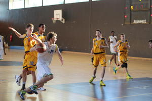 Notre équipe débute bien le match avec une première mi temps engagée et de nombreuses fautes mais qui nous permet néanmoins d'être largement devant à la mi temps . (45 à 25 pour l'Union)