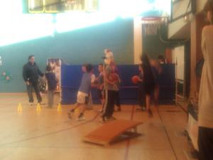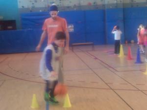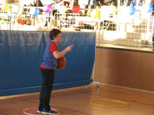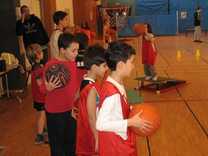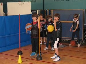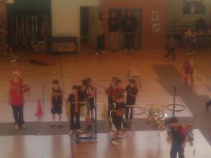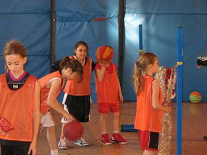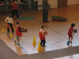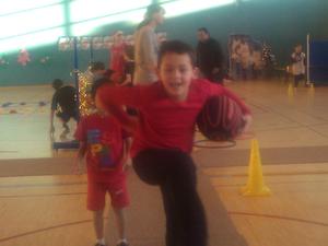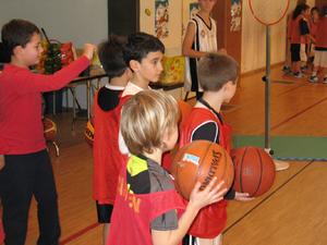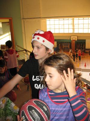 De sa baguette magique, La Fée Elodie a transformé le gymnase. Avec quelques cerceaux, des paniers de baskets, plusieurs paravents, une haie de guirlandes , trois décorations , de l'enthousiasme et de la poussière de reve,la magie de Noel s'est réalisée. Ils sont là, plein de dynamisme,avec leur envie de s'amuser et de prendre du plaisir en jouant au basket.Les voici occupant tout le terrain , répartis en petits ateliers, judicieusement répartis par Elodie avec un coach référent. Chacun s'applique dans son petit parcours,celui qui drible ou qui fait des passes, celui ci grimpe sur un banc ou celle ci qui saute sur un trempoline et tous shootent. On est sérieux et on s'amuse , on rit et on écoute le coach, on s'applique mais on suit un peu moins la consigne qu'à l'ordinaire : c'est le Noel du Basket.