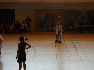 , des visages reconnus de clubs avoisinants dans les gradins, (cela faisait un bout de temps que les Yvelines n'étaient pas représentées dans un championnat national et qui plus est avec des 1/4... ),qq cadettes, qq académiciens et les cadets 2 (Clément,David, Stéphane, Guillaume) venus,supporter leur assistante coach qui jouait et qui ont donné de la voix , hein Guillaume