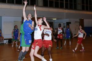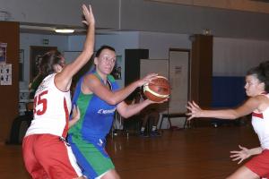 Le départ fut très positif, avec une belle circulation de balle et des positions converties notamment par Leila à trois points. Avec 18-8 au premier quart temps (prolongé par 22-12 après 16 minutes), et une opposition faible jusque là, on se disait que la soirée serait bonne. Mais c'est à partir de ce moment que la mécanique se grippat. Les visiteuses renforçaient leur défense, prenaient confiance en attaque et commencèrent à remonter (26-23 à la mi-temps).