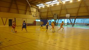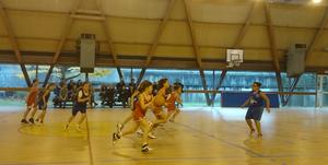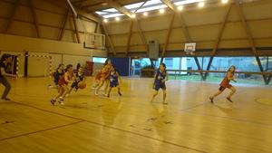 Le match débute bien avec un 5/0 pour nous en 1ère période, malgré de nombreux paniers ratés en contre-attaque.La 2ème période est équilibrée 4/4 et la 3ème catastrophique puisqu'on encaisse un 0/14 avec des ballons donnés à l'adversaire