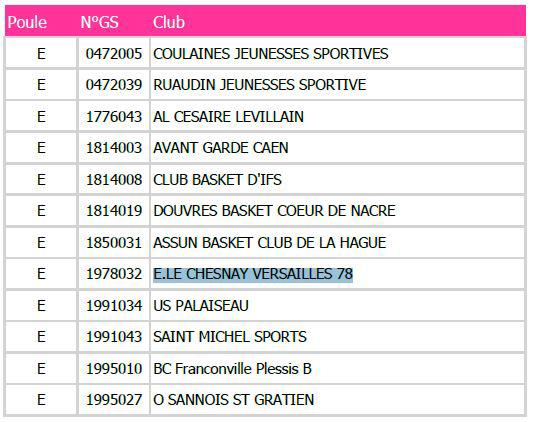 Les poules pour 2015-2016 |