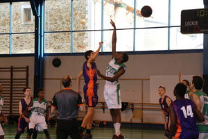 Nous démarrons très bien le troisième quart temps en prenant jusqu'à 23 points d'avance mais petit à petit Nanterre revient ( beaucoup de fautes de notre coté ) et l'écart se réduit . Nous finissons ce troisième quart temps sur le score de 50 à 32 . ( 18 à 14 pour l'élan )