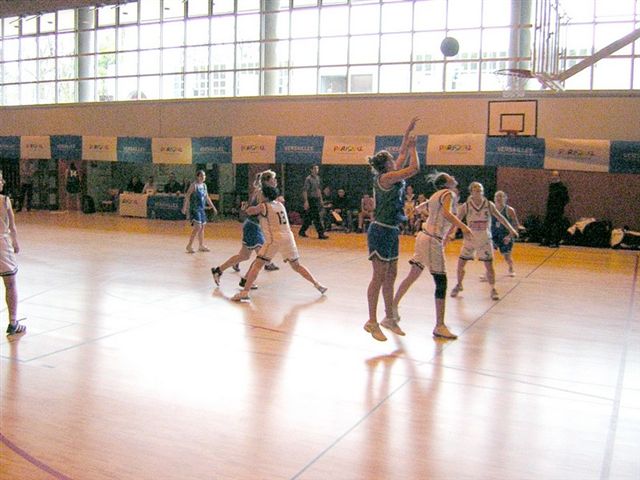 Avantagé encore du petit 7-0 réglementaire en début de match, l’Entente était rapidement dépassée mais réussissait à revenir à 21-21 à la fin du premier quart-temps, sur un panier stratosphérique de Nadège (lisez « largement derrière la ligne à trois points »), et sur un panier de Sandra au buzzer. Dunkerque fit de nouveau un petit écart dans le second quart-temps, mais l’Entente résistait bien et avait de bons passages dans un match rapide, mais parfois rugueux. Le score à la mi-temps était de 32 à 35.