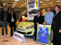 Valérie Yem, Romain Lenaff et Bojan Colic, membres des équipes premières, sont venus découvrir la Nouvelle Twingo ainsi que leur nouveau maillot. Ils ont été accueillis par M. Gouilly-Frossard, Directeur de Renault Versailles.