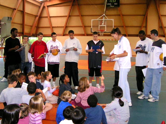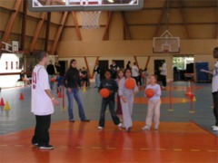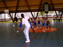 Suit un concours de dunks fait par les animateurs, à la plus grande joie des enfants, limite émerveillés !!! Puis c’est la chorégraphie des Mini poussins.