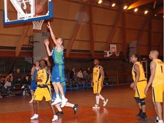 Les deux équipes ont bien du mal à se départager tout au long de la première mi-temps : 17 - 16 à la fin du premier quart en faveur de l'équipe locale, 32 - 33 à la mi-temps.