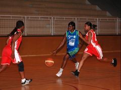 Les deux équipes ont un peu de mal à se départager tout au long du 1er quart temps même si au final cela tourne à l’avantage de l’équipe locale (13 – 6 puis 15 – 10). Les bleues ont 12 points d’avance à la mi-temps.
