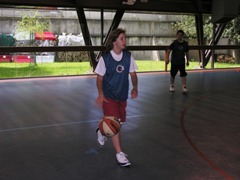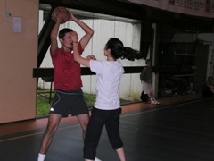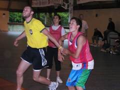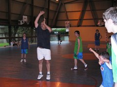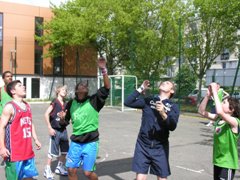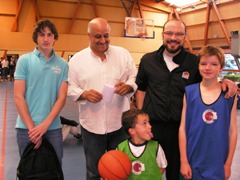 Pour la petite histoire, le tournoi opposait très amicalement douze équipes mêlant une majorité de jeunes joueurs, ainsi que quelques adultes et surtout quelques "tout petits" que tous les autres essayaient de faire marquer pour bénéficier des paniers primés ! Le tournoi a vu la victoire de l'Assevelle (bravo pour le nom !) sur les Chacals. Le concours de lancer-francs a été brillamment remporté par Delphine Pausé (huit d'affilée) devant Jean-Baptiste, et Johan et Enzo à égalité. Bravo à tous les inscrits, et particulièrement aux parents qui ont joué le jeu en chaussant ou rechaussant les baskets !